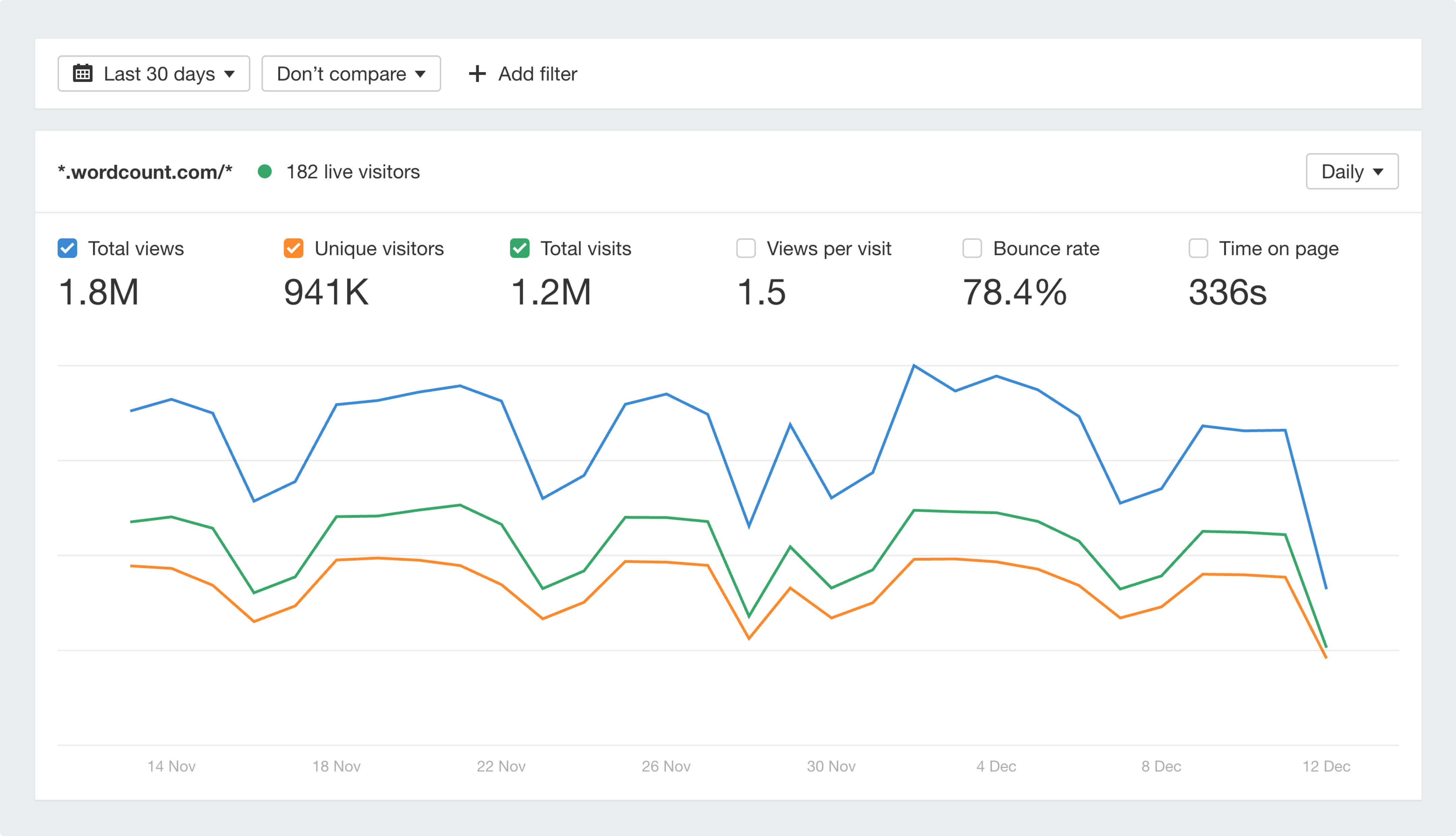 A better way to track website traffic: focused insights, GDPR-friendly, cookie-free, and lightning-fast.