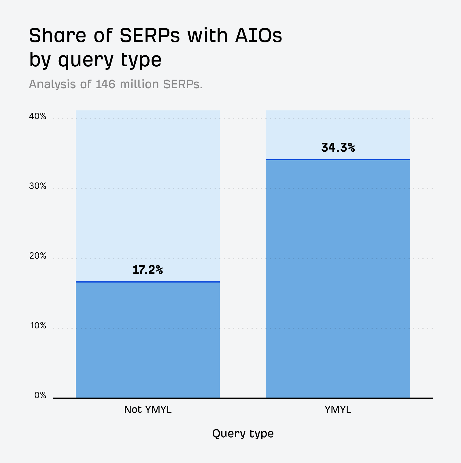 Almost a third (32.3%) of the keywords that trigger AI Overviews are categorised as YMYL (Your Money or Your Life) queries.
