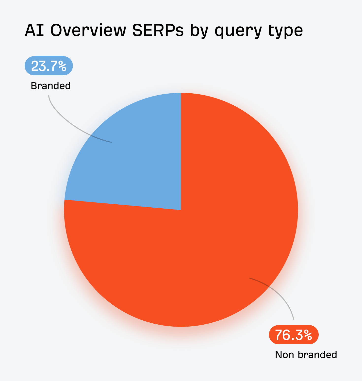 76.3% of keywords that trigger AIOs are considered non-branded (e.g. seo tools), with the remaining 23.7% categorised as branded searches ( e.g. Ahrefs).