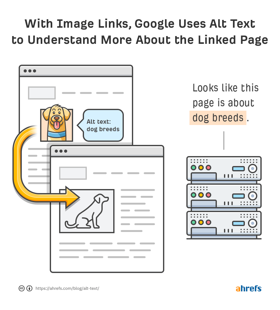 If you do decide to use an image as a link, filling out its alt text helps Google understand more about the page you’re linking to. Imagine that you’re writing anchor text for a text link.