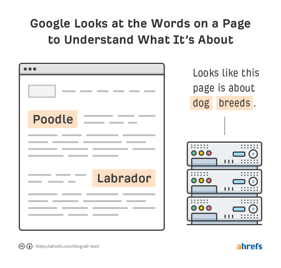 Google looks at the words on a page to understand what it’s about.