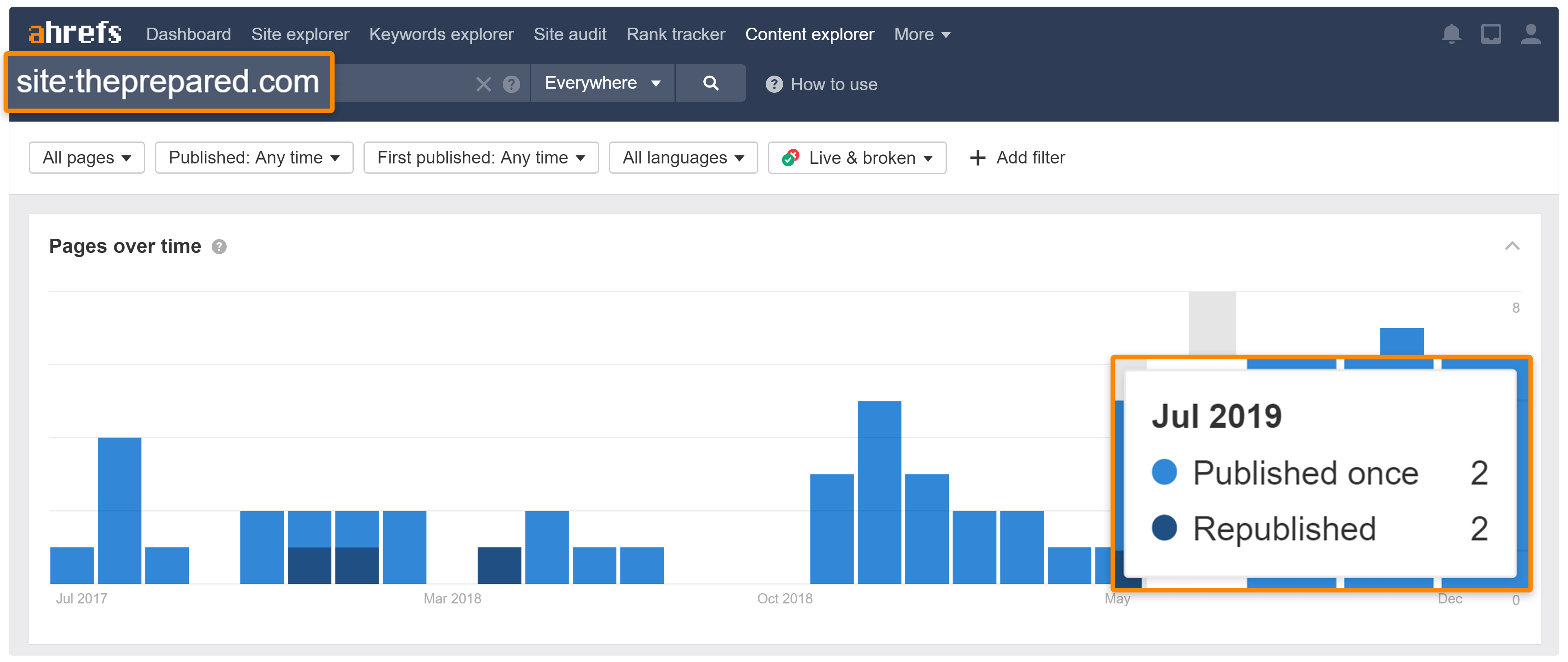 Domain Rating: 36 Number of referring domains: 901 Number of keywords it ranks for: 40,600 Estimated organic traffic: 31,900 Site age: 2 years Estimated revenue: UnknownFounded by John Ramey and John Adama—former advisors at the Obama White House—The Prepared is a survivalism website that publishes practical guides on preparing for emergencies ranging from potential car accidents to war.