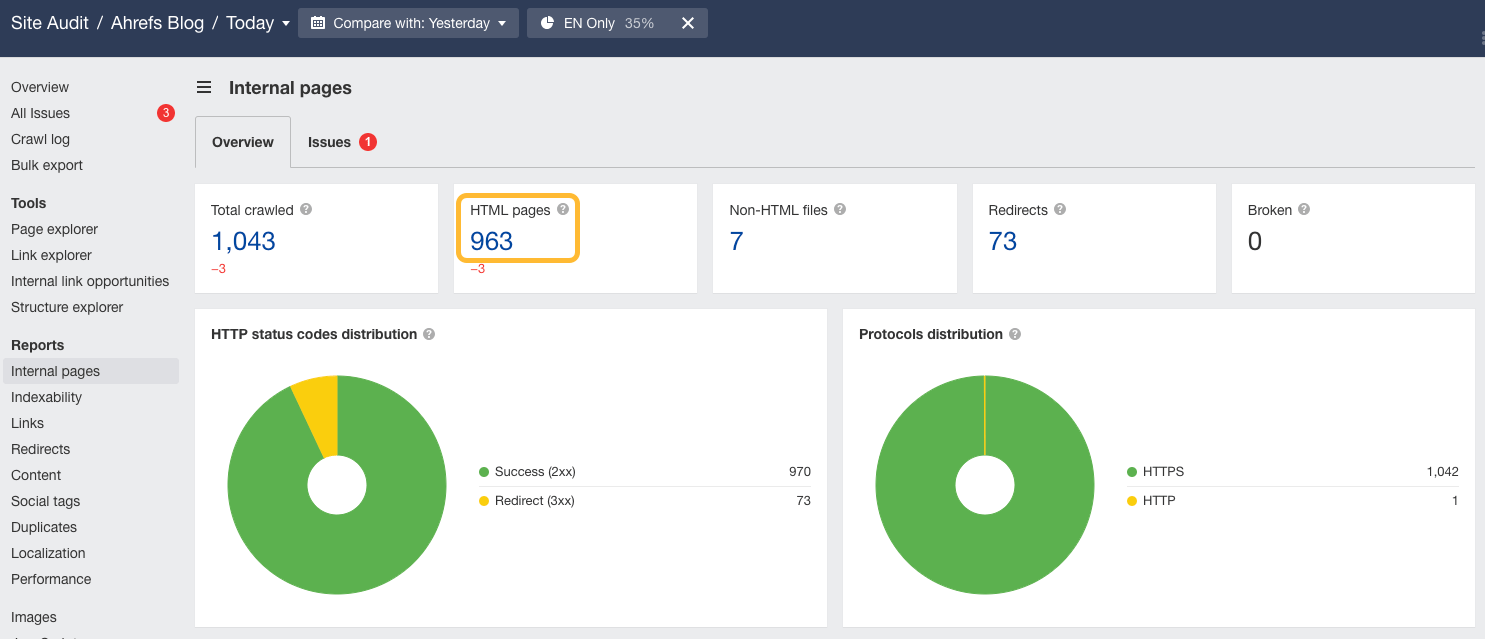 This means you can crawl a 300-page website every second day. For example, the English part of the Ahrefs Blog could be fully crawled 4 times per month with 5,000 crawl credits.