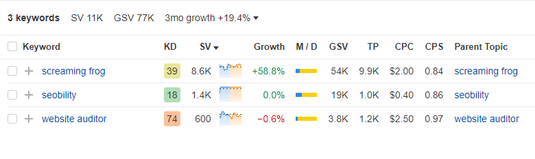 The search volume data from Ahrefs’ Keywords Explorer