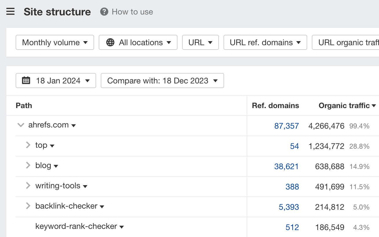 With the Site structure report, you get a super visual and intuitive way to understand how a website’s pages are organized, and see which sections of their website bring the most amount of organic search traffic.