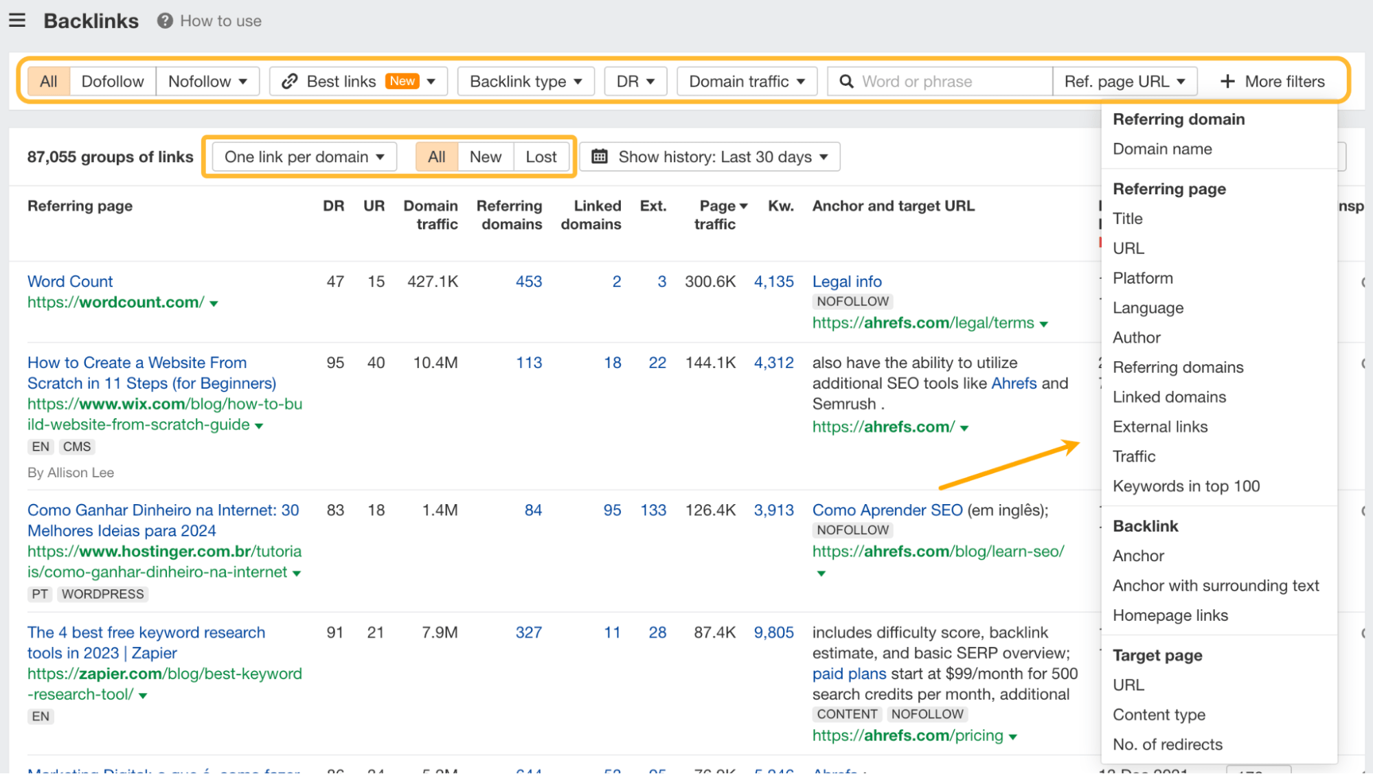 To give you even more control over your data, we’ve added a Best links filter in Overview 2.0 and all backlink-related 2.0 reports that lets you filter for so-called “good” links.