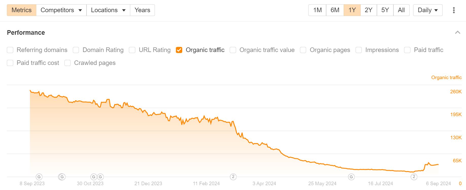 | Organic pages | 1,168,889 | 377,142 | -791,747 | -67.74% |