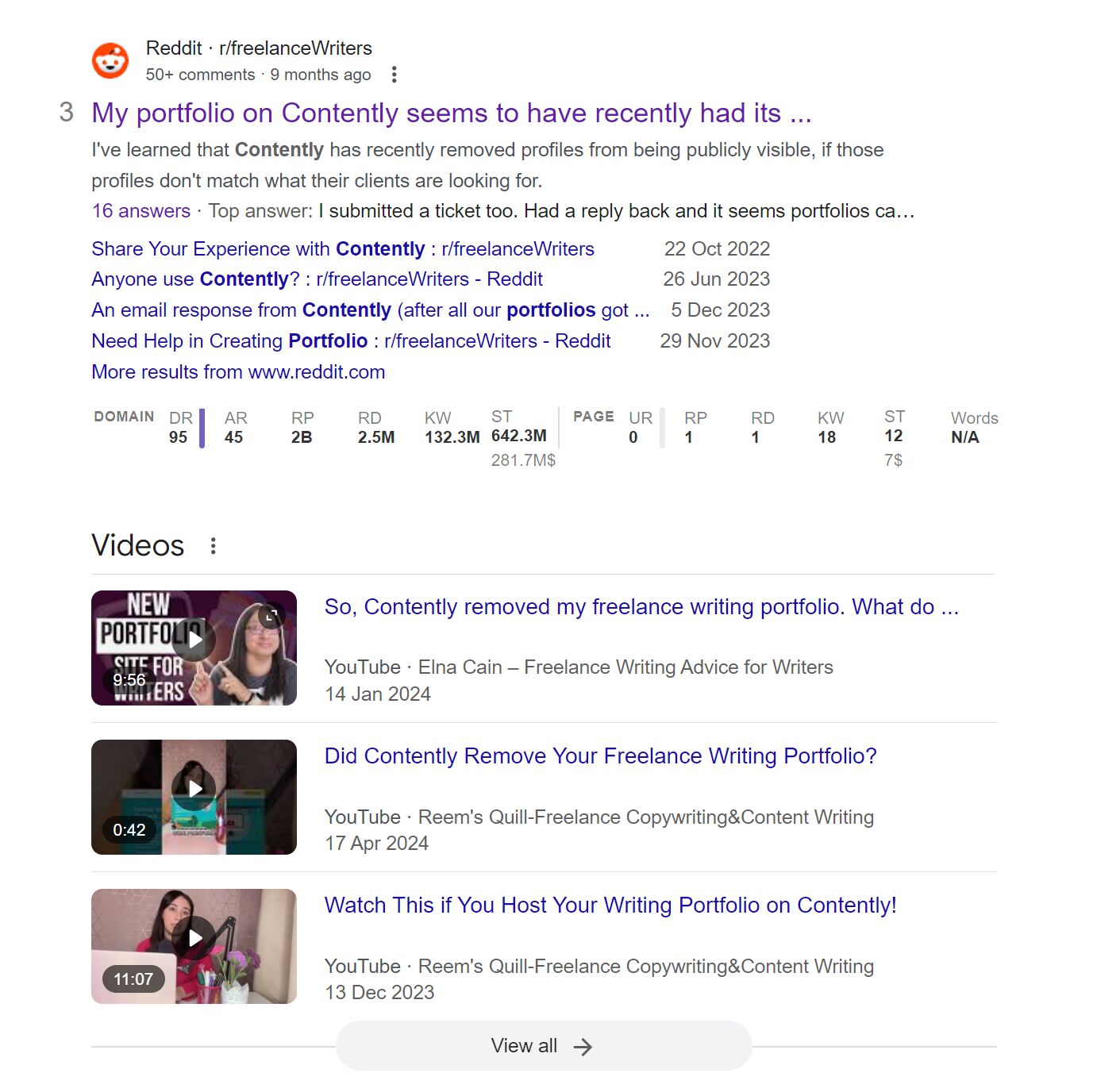 A quick Google search for “contently writer portfolios” suggests that the company made the deliberate decision to deindex all writer portfolios by default, and only relist them once they’ve been manually vetted and approved:
