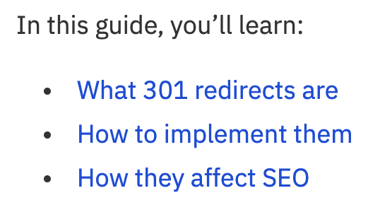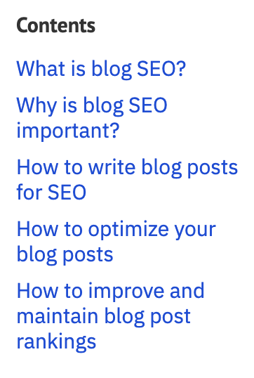A table of contents links to important subsections of your post and helps visitors find the information they’re looking for.