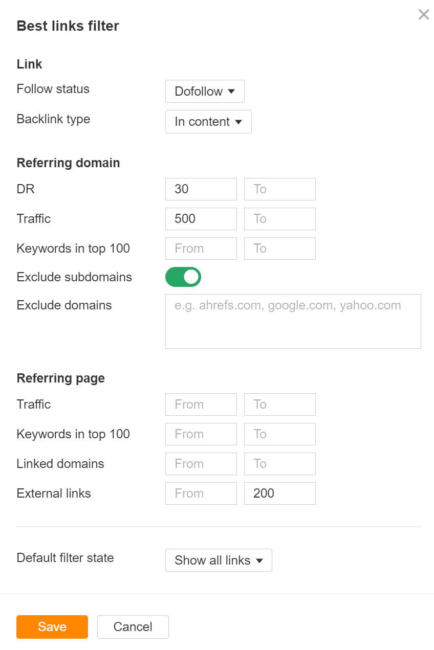 You can exclude spammy links like these using our Best links filter. By default, the “Best links” filter will only show links that are: