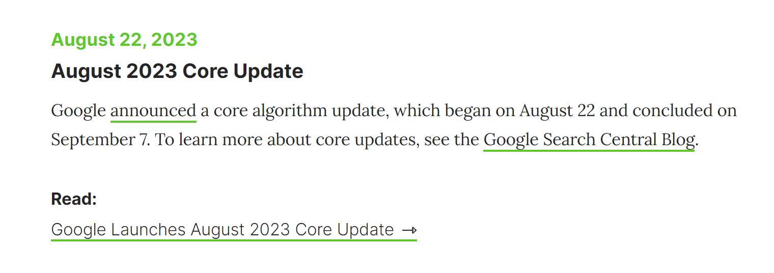 I know that our publishing frequency was fairly static (we definitely didn’t double our content output). Seasonality would cause a traffic drop, not a spike (we’re writing about SEO, not holiday gift guides).