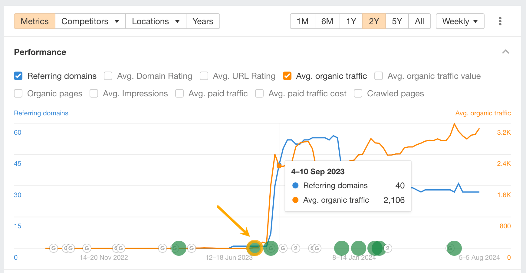 Let’s do a small exercise. For the website below, link insertions — and not just text additions alone — were also responsible for traffic spikes.