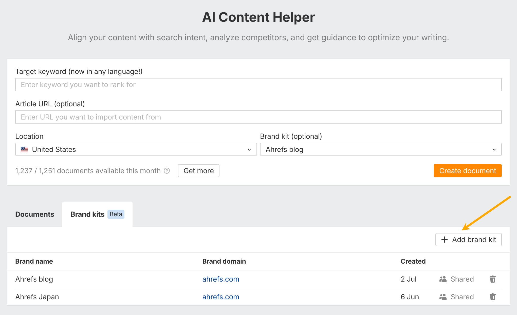 And if you want the tool to use your brand preferred terms and style from the start, just add a brand kit.