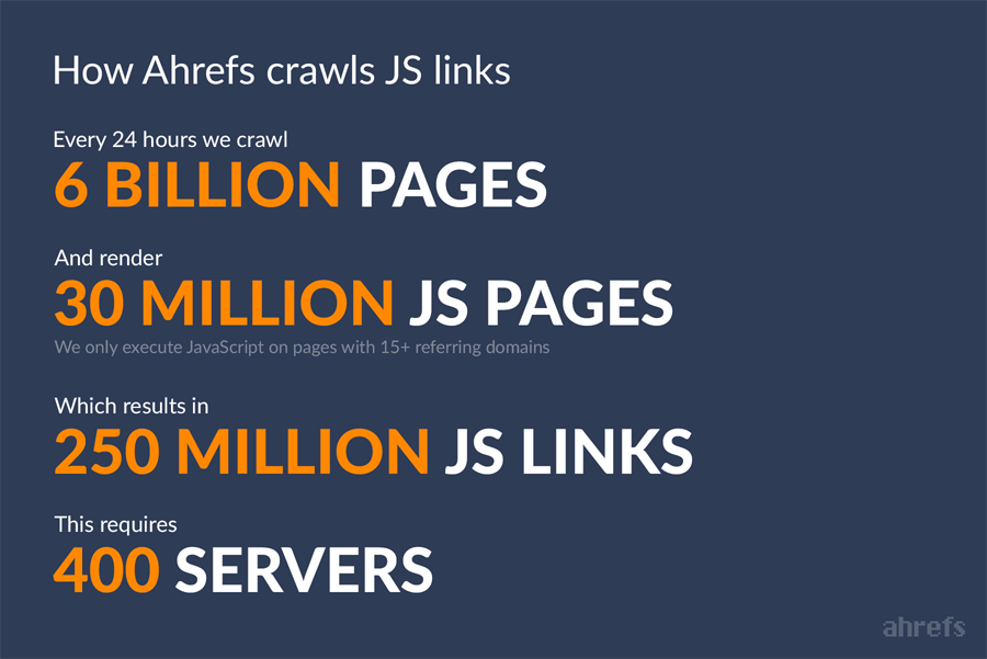So earlier this year Dmitry (our Founder & CEO) decided that Ahrefs has to be the first among its rivals to crawl JavaScript links.