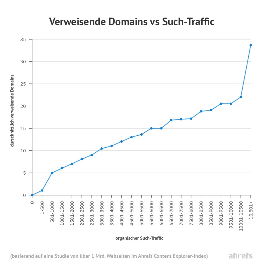 Backlinks sind wohl der wichtigste Google-Ranking-Faktor. Sie sind die Grundlage des Ranking-Algorithmus von Google, und mehrere unabhängige Studien haben starke Korrelationen zwischen der Anzahl der Backlinks von individuellen Websites und dem organischen Traffic einer Seite gefunden.