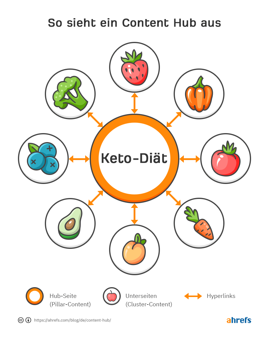 - Hyperlinks: Diese verbinden die Hub-Seite mit den Unterseiten. Die Hub-Seite verlinkt zu allen Unterseiten, und jede Unterseite verlinkt zurück zum Hub.