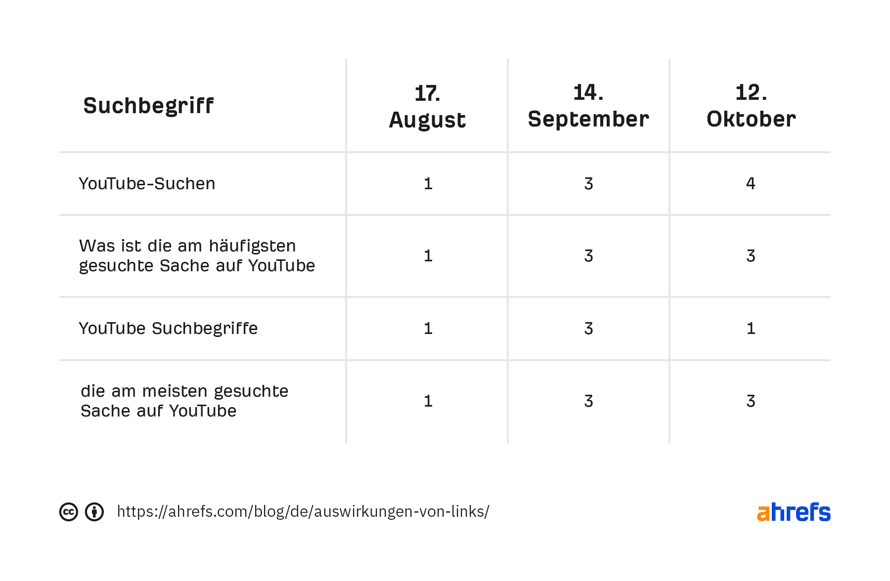 Bei der “YouTube-Suche” haben eine YouTube-Seite und eine Google Trends-Seite unsere Seite während des Tests in den Ergebnissen nach unten gedrückt. Wir sind jetzt wieder auf Platz 1 und haben den Traffic für diesen Begriff zurückgewonnen.