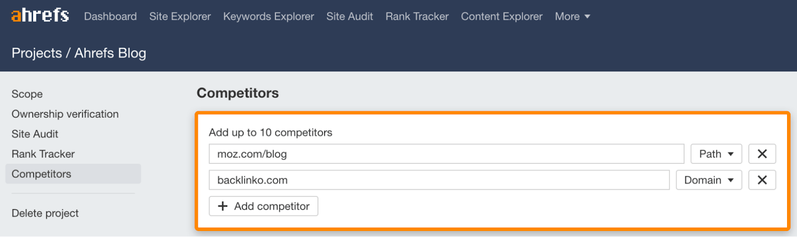 Für den Ahrefs-Blog fügen wir Backlinko und den Moz-Blog hinzu.