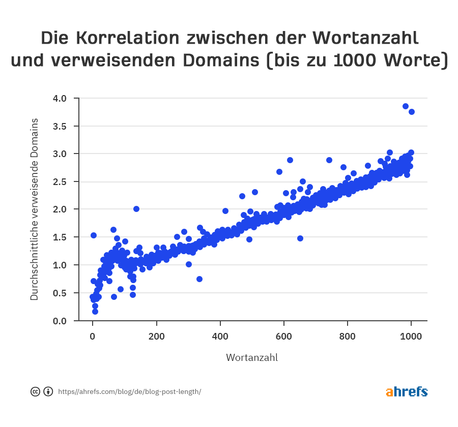 Wenn du dir die Beziehung zwischen Wortzahl und Backlinks ansiehst, gibt es tatsächlich eine starke positive Korrelation.
