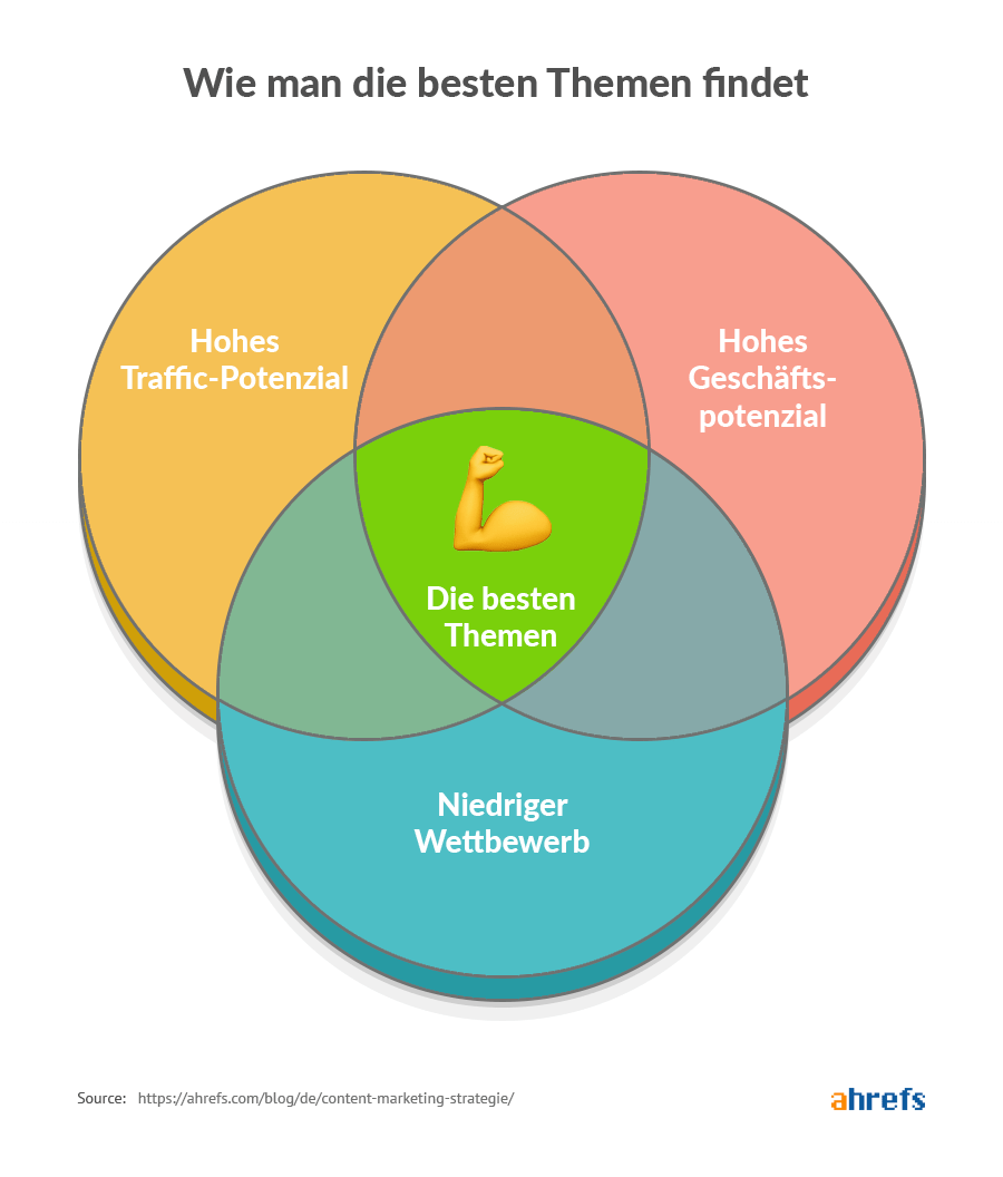 Die besten Themen sind die mit einem hohen Traffic-Potenzial und Geschäftswert und einem geringen Wettbewerb: