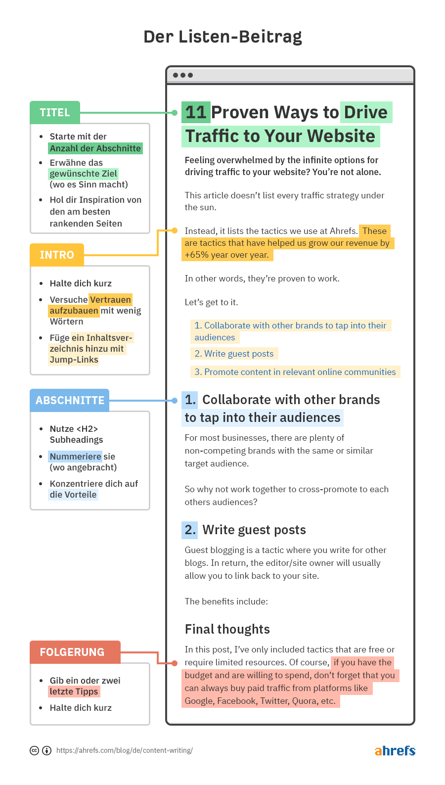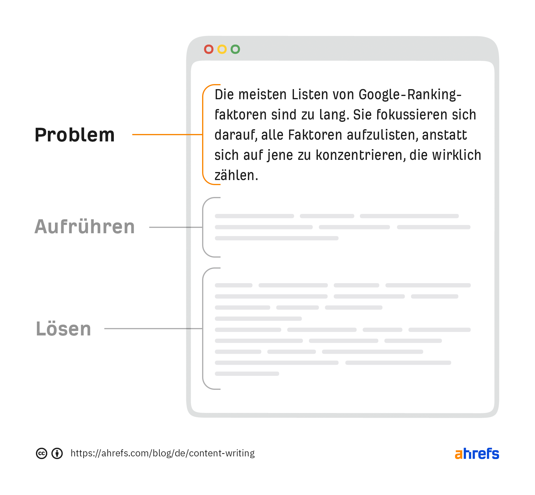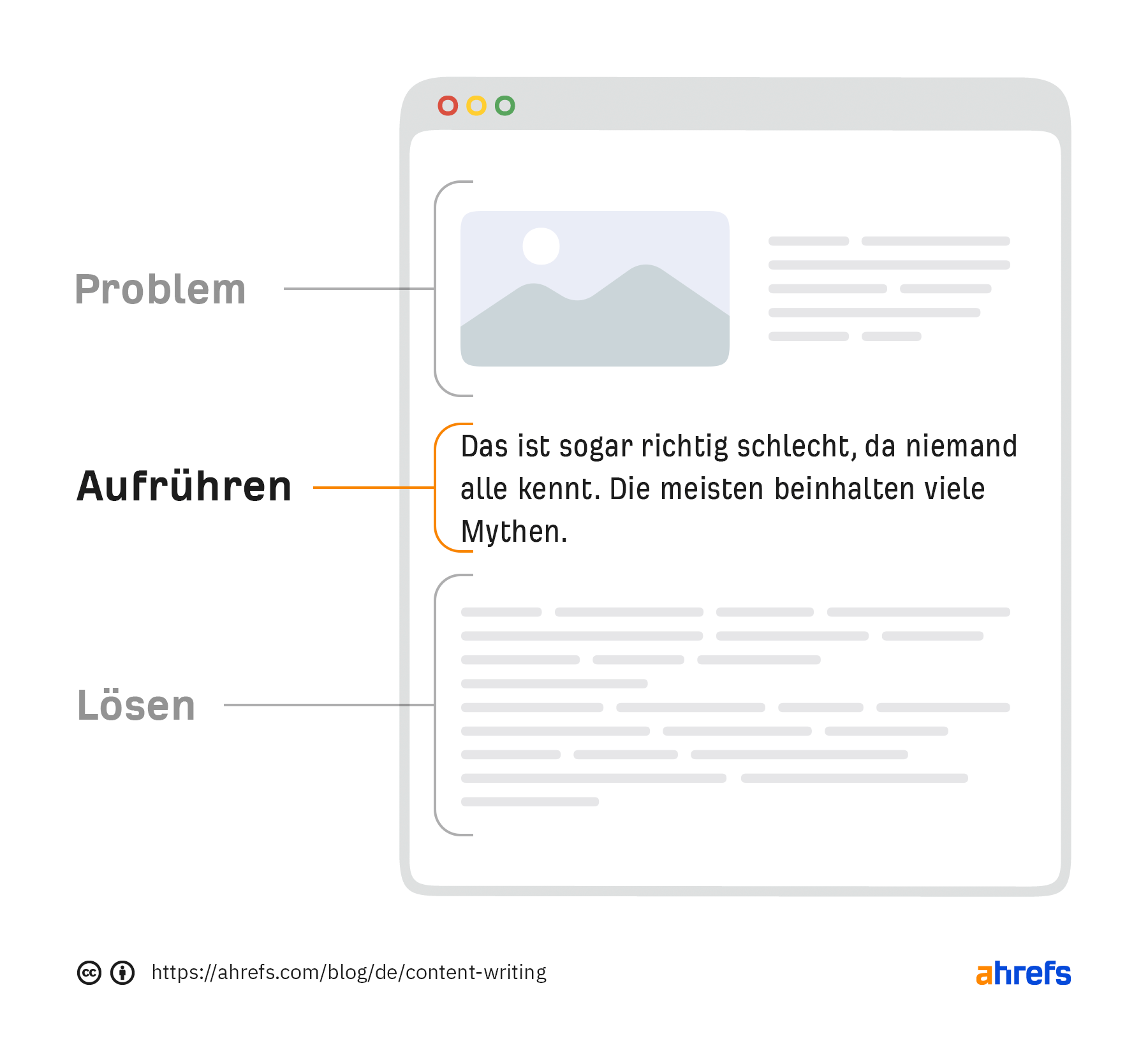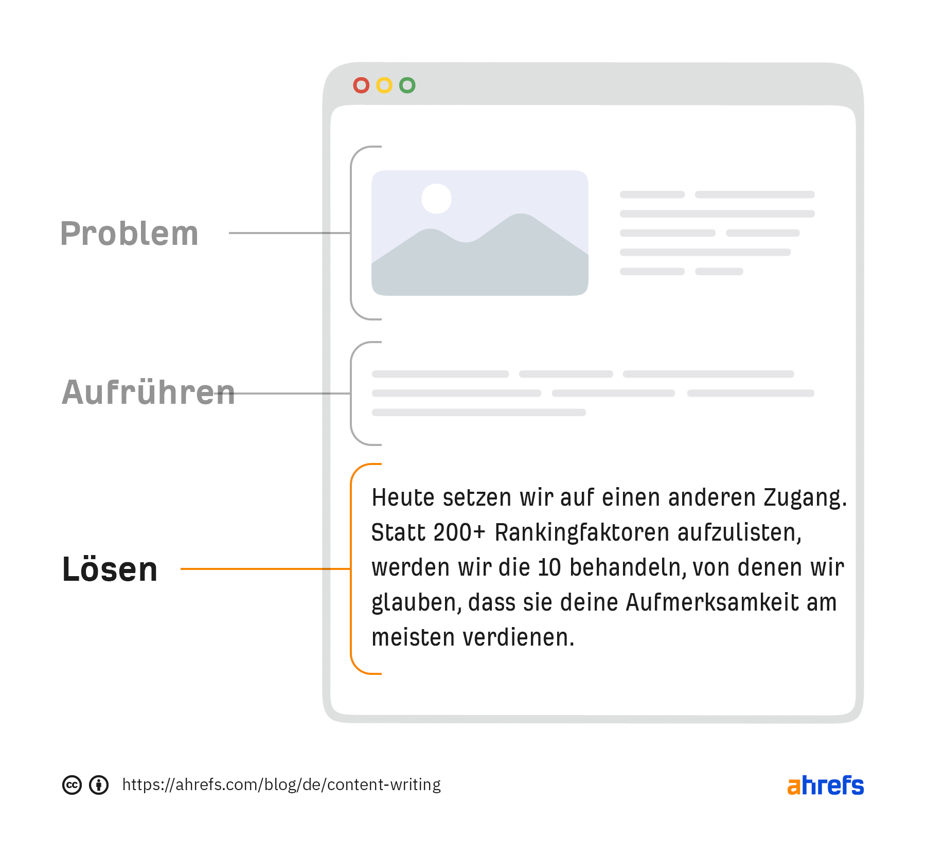 Das nennt man Content Marketing, und deshalb liest du hier im Ahrefs-Blog einen Artikel über Content Writing. Indem wir dich über die Bedeutung und die Best Practices für das Verfassen von Inhalten aufklären, hoffen wir, dein Bewusstsein, dein Interesse und deine Nachfrage nach unserem Produkt zu steigern.
