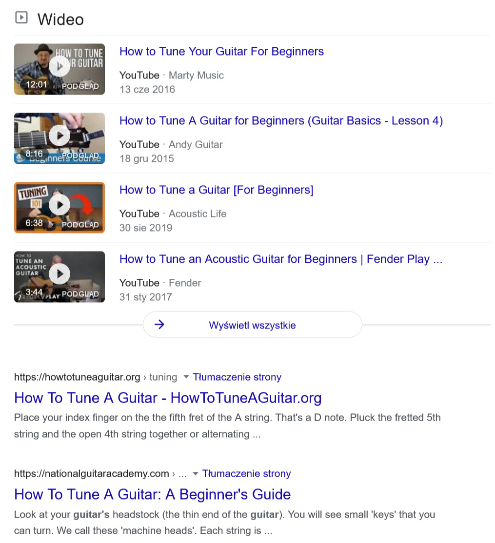 Zum Beispiel rankt Google Ratgeber für eine Suchanfrage wie “Wie stimme ich eine Gitarre?” am höchsten.