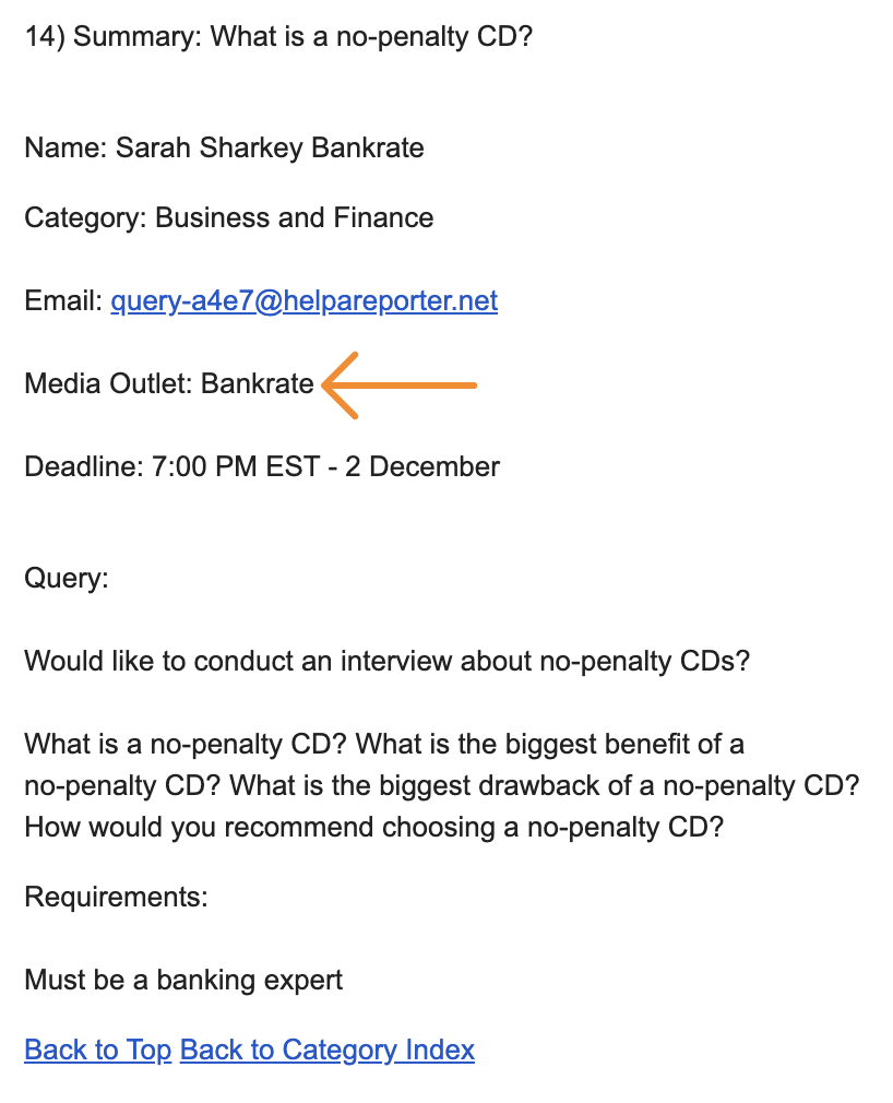 Nachdem du die E‑Mail erhalten hast, musst du nur noch prüfen, ob du die Anforderungen erfüllst und antworten. Wenn sie deine Antwort in ihrem Beitrag verwenden, werden sie dich normalerweise mit einer Erwähnung und einem Backlink belohnen.