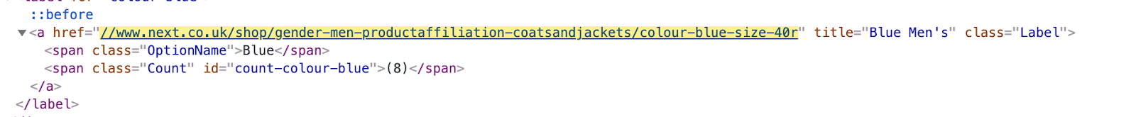 Wenn du dir den HTML-Code einer Facette ansiehst, siehst du einen Link im HTML-Code: