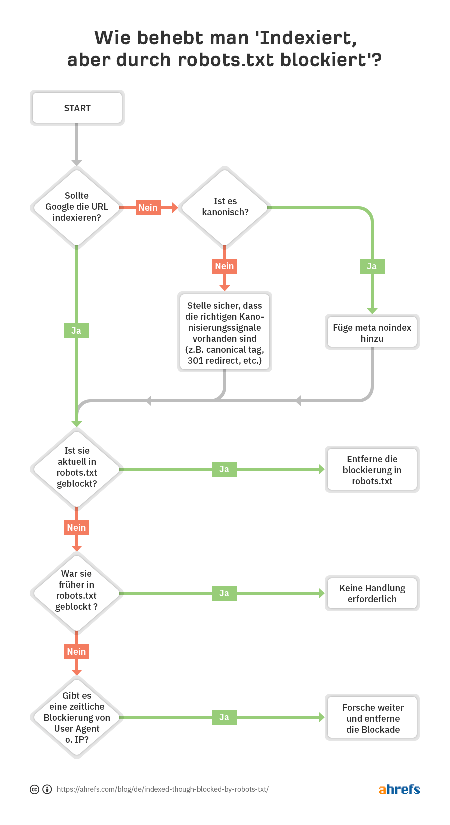 Wenn du eine Seite für das Crawling blockierst, kann Google sie trotzdem indexieren, weil Crawlen und Indexieren zwei verschiedene Dinge sind. Wenn Google eine Seite nicht crawlen kann, erfasst es das noindex Meta Tag auch nicht und indexiert die Seite möglicherweise trotzdem, weil sie Links enthält.