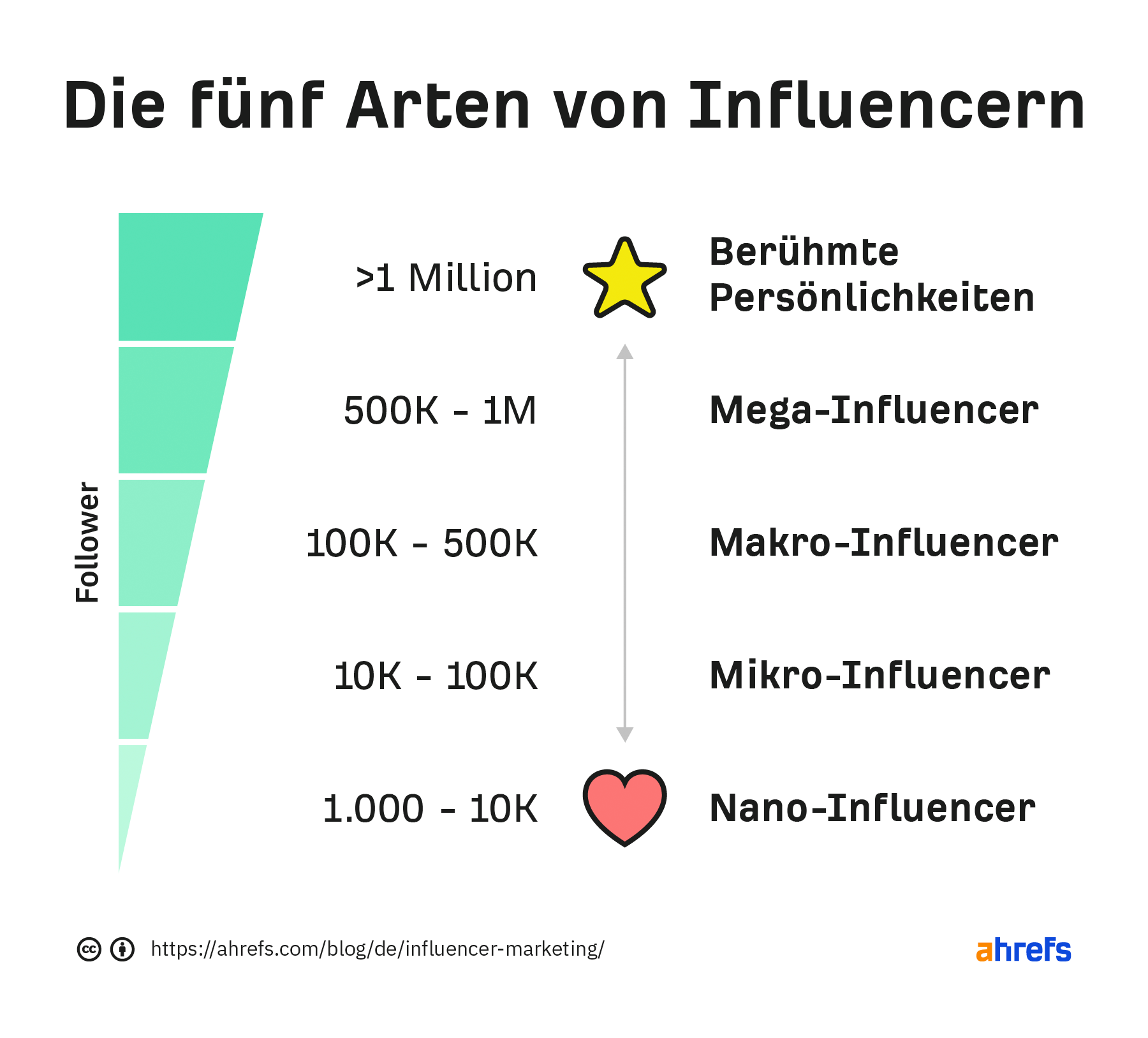 Wenn du die verschiedenen Arten von Influencern kennst, kannst du dein Budget und deine Strategie besser planen. Hier ist die Aufschlüsselung: