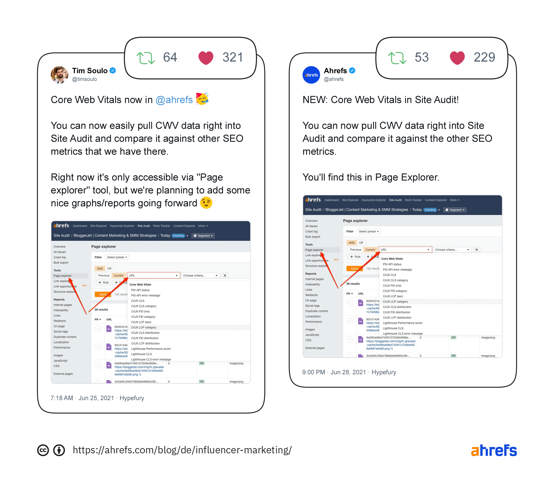 Es ist nicht nur Tim. Ich habe bereits erwähnt, dass das Ahrefs-Marketingteam selbst Nano- und Mikro-Influencer ist. Wir helfen auch dabei, Kunden zu gewinnen, wie Sam: