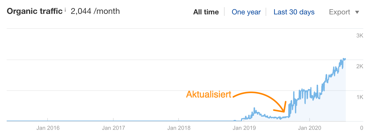 Daher haben wir den Beitrag im August 2019 neu geschrieben und neu veröffentlicht. Der Traffic hat sich über Nacht mehr oder weniger verdoppelt und ist weiter gestiegen.
