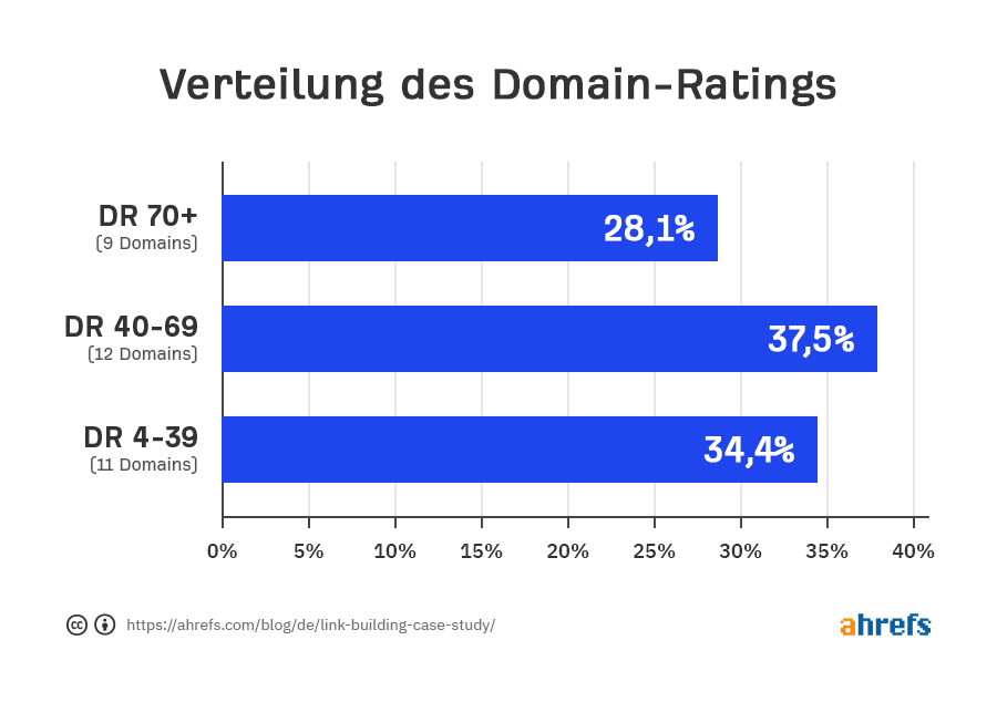 9 der 32 verweisenden Domains hatten einen DR-Wert von 70 oder mehr. 12 hatten einen DR zwischen 40 und 69. Und die verbleibenden 11 hatten einen DR zwischen 4 und 39.