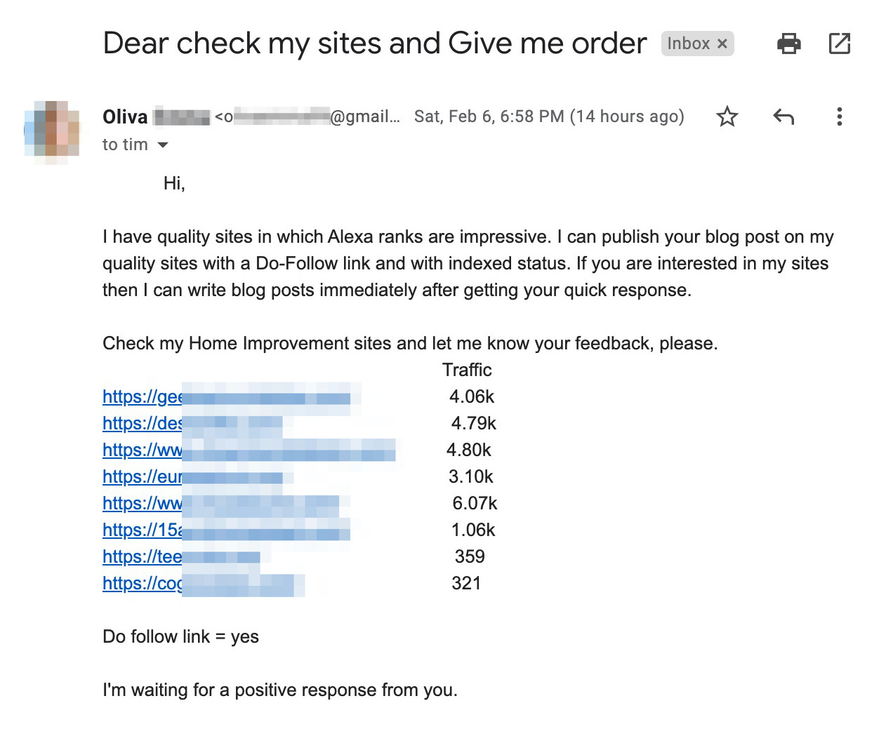 Es gibt genügend Artikel, die dir zeigen, wie man richtige Outreach-E-Mails schreibt. Auch ich habe meine Gedanken zu diesem Thema hier auf dem Ahrefs Blog geteilt. Wenn ich aber nur einen einzigen Outreach-Tipp geben könnte, dann wäre es dieser: