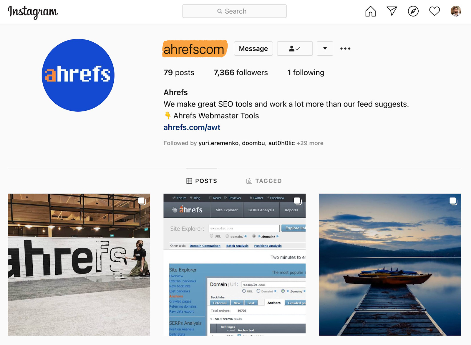 Genau aus diesem Grund tritt unser Team auf Instagram unter dem Namen “ahrefscom” statt unter “ahrefs” auf. Jemand anderes hat sich diesen Benutzernamen geschnappt und wir haben es bis jetzt nicht geschafft, ihn zurückzufordern.