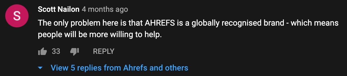 Ein Kommentar zu unserer Linkaufbau-Fallstudie, in dem es heißt, dass es einfacher ist, Leute um Links zu bitten, wenn man eine weltweit anerkannte Marke ist.