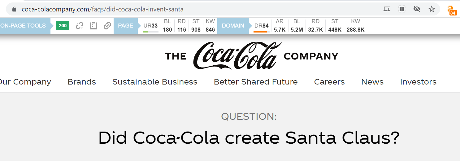 Auf der Website der Marke gibt es sogar eine eigene Seite, die die Frage beantwortet: “Hat Coca-Cola den Weihnachtsmann erfunden?” Erstaunlicherweise wird diese Seite allein in den USA monatlich schätzungsweise 900 Mal besucht.