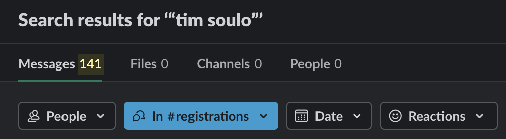 Unser Kanal #registrations in Slack hält uns auf dem Laufenden darüber, wie neue Anmeldungen zu uns gefunden haben.