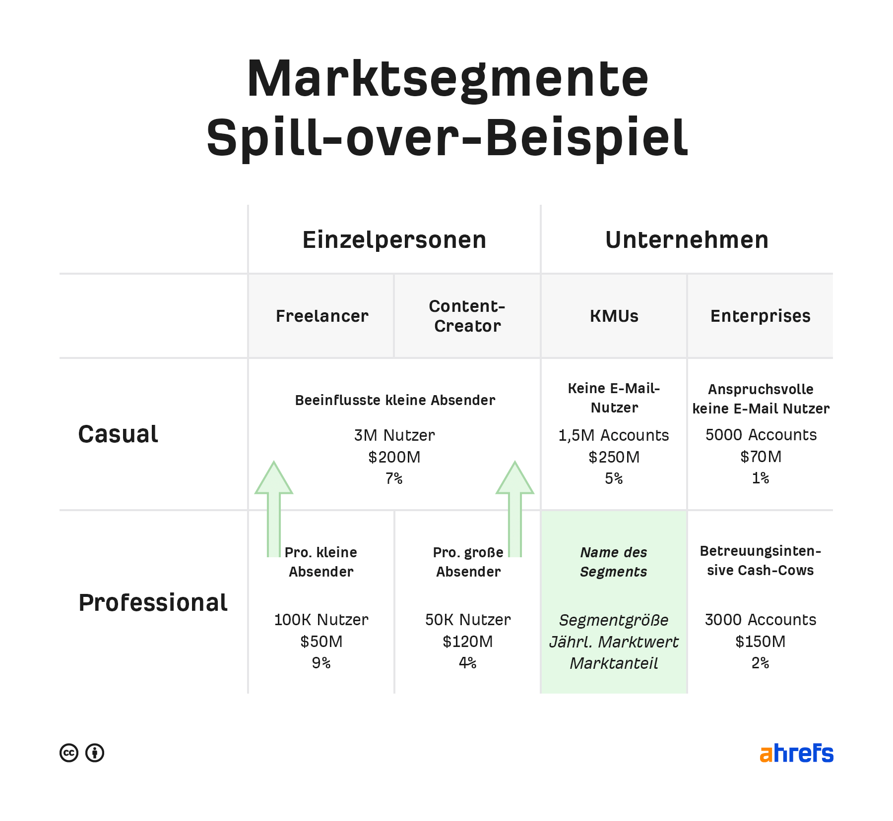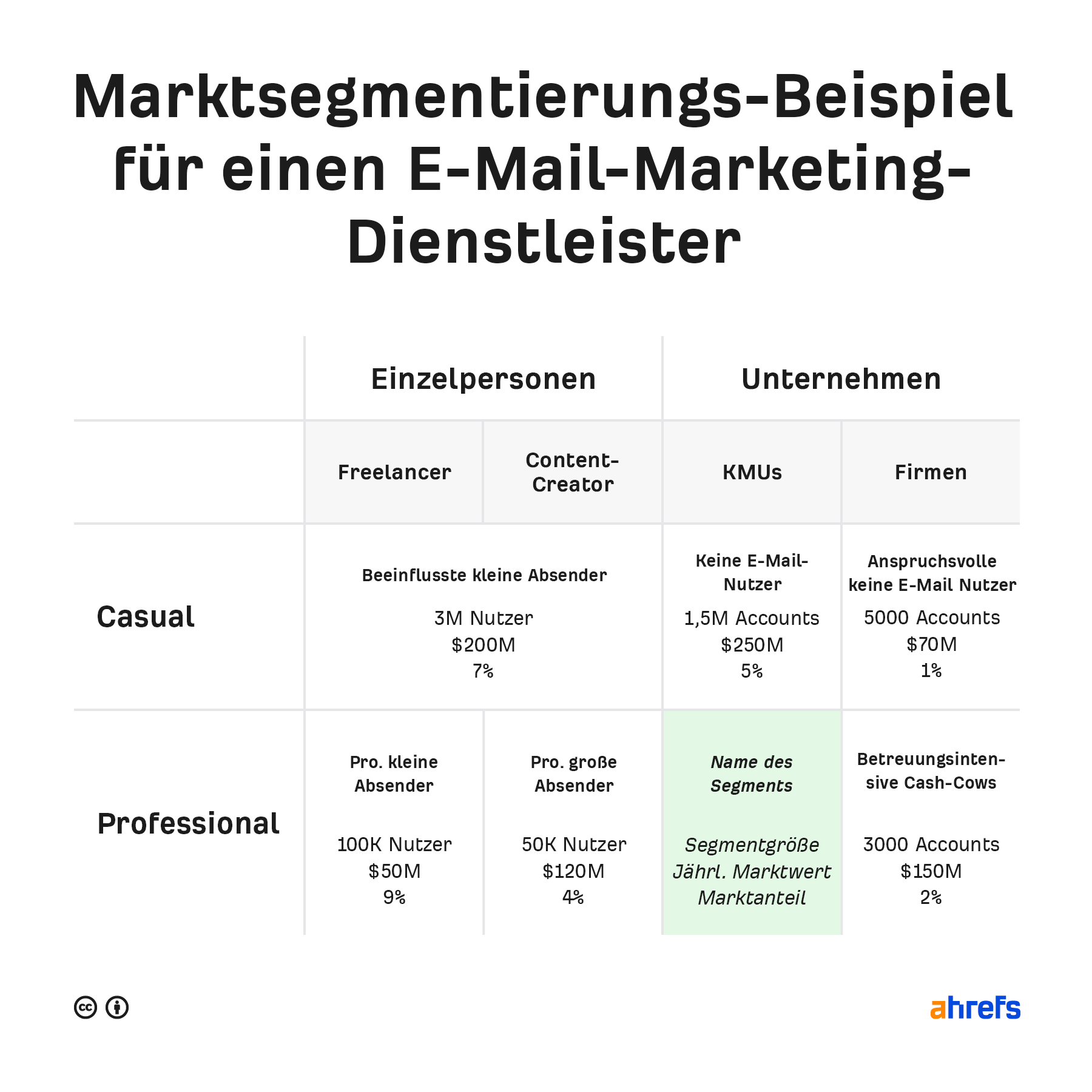 Hier siehst du, wie eine richtige Marktsegmentierung für einen E‑Mail-Marketing-Dienstleister aussehen könnte: