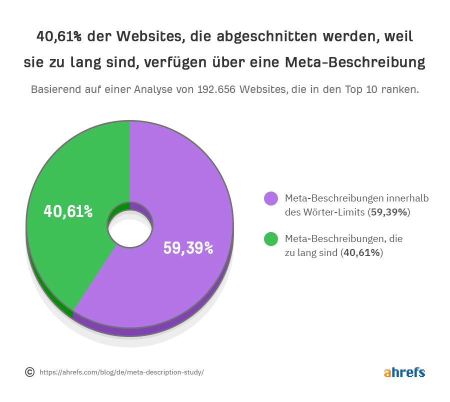Vielleicht liegt das daran, dass lange Meta-Beschreibungen ziemlich häufig vorkommen. 40,61% der Beschreibungen von insgesamt 192.656 Websites, die wir untersucht haben, waren zu lang.