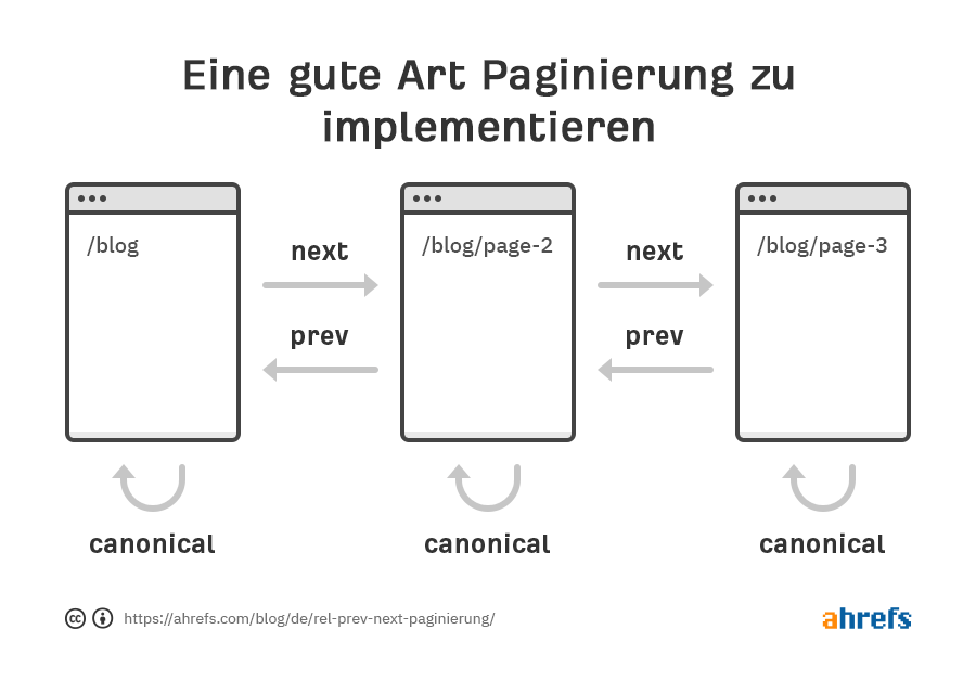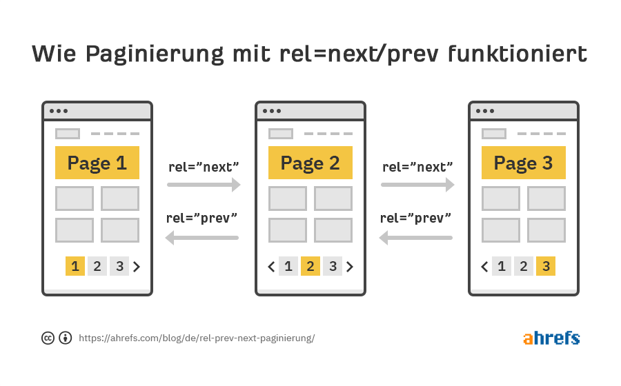 Der Zweck von rel=prev/next ist Seiten in einer Reihe/Serie auszuzeichnen. Google nutzte das Markup ursprünglich, um Signale mit der Gruppe der paginierten Seiten zu teilen, während weiterhin die relevanteste Seite in ihren Suchergebnissen angezeigt wurde. Typische Nutzungsfälle beinhalteten das Aufteilen von Inhalten in mehrere Teile und das Erstellen mehrerer Seiten für Produktlisten, Forenthreads und Listen von Blogs.