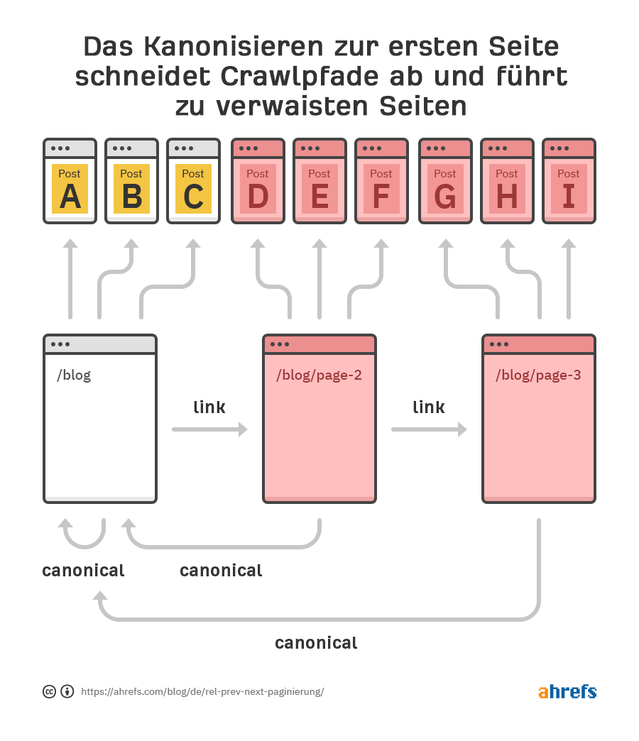 Im besten Fall ignoriert Google hier das kanonische Tag. Wenn die kanonischen Tags respektiert werden, werden am Ende Crawling-Pfade zu vielen Seiten abgeschnitten und der Content verwaist. Dadurch wird es für Suchmaschinen schwieriger, wertvollen Content zu finden und zu indizieren, und der PageRank-Fluss auf deiner gesamten Website wird ebenfalls unterbrochen.