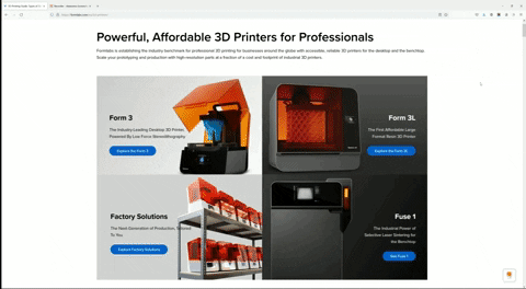 - Aber gleichzeitig sind die einzigen 3D-Drucker, die du dort siehst, Produkte von Formlabs. Außerdem sind sie das Erste, was du siehst, bevor du zum Abschnitt “Ratgeber” scrollst.