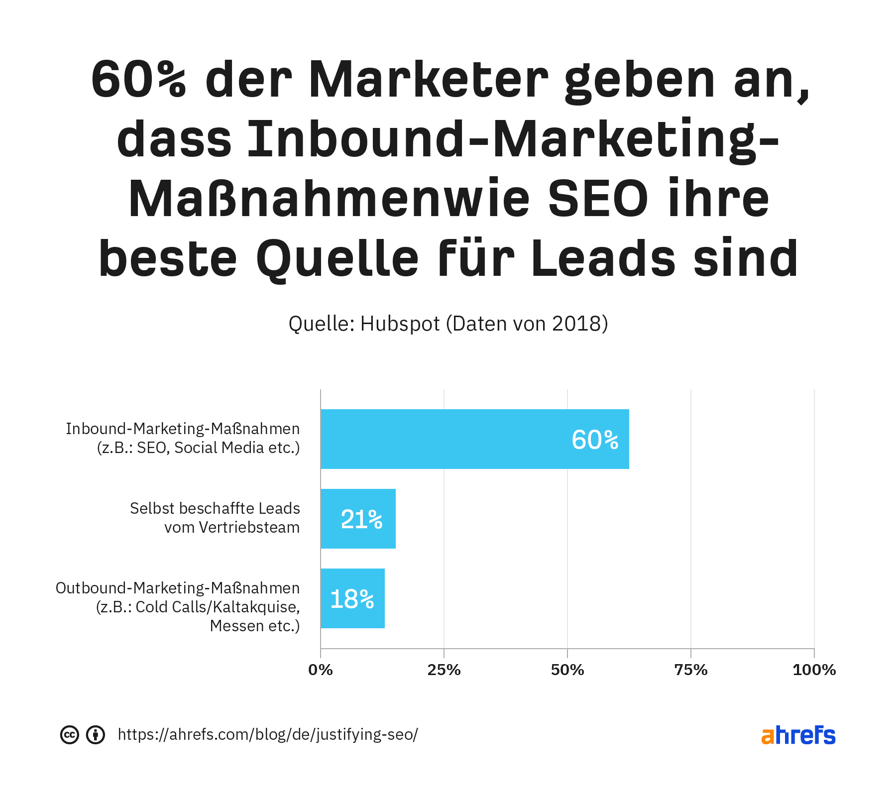 Du kannst auch den “sozialen Beweis” zu deinem Vorteil nutzen. Du kannst z.B. zeigen, dass 60% der Marketer angeben, dass Inbound-Marketing-Maßnahmen wie SEO ihre beste Quelle für Leads sind: