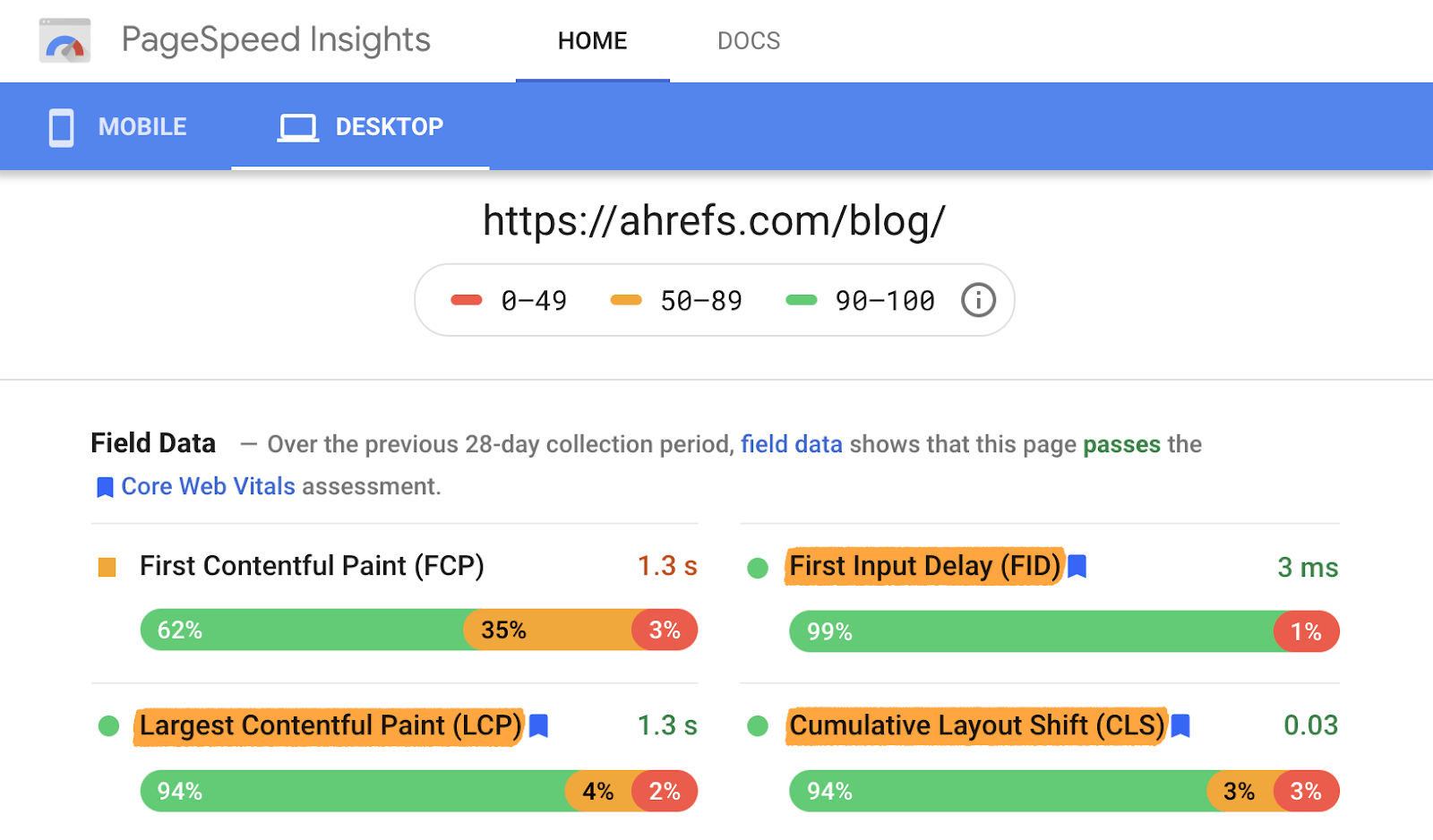 Um diese Metriken für jede Seite zu überprüfen, verwende Pagespeed Insights.