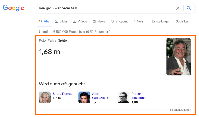 Google beschreibt das Verstehen der Intention hinter Suchanfragen als einen “entscheidenden Aspekt der Suche” und investiert weiterhin stark in Technologien, die dabei helfen, wie RankBrain, BERT und den Knowledge Graph. Wir haben diese bereits im Abschnitt zur Voice Search behandelt, aber sie helfen auch bei der regulären Suche.