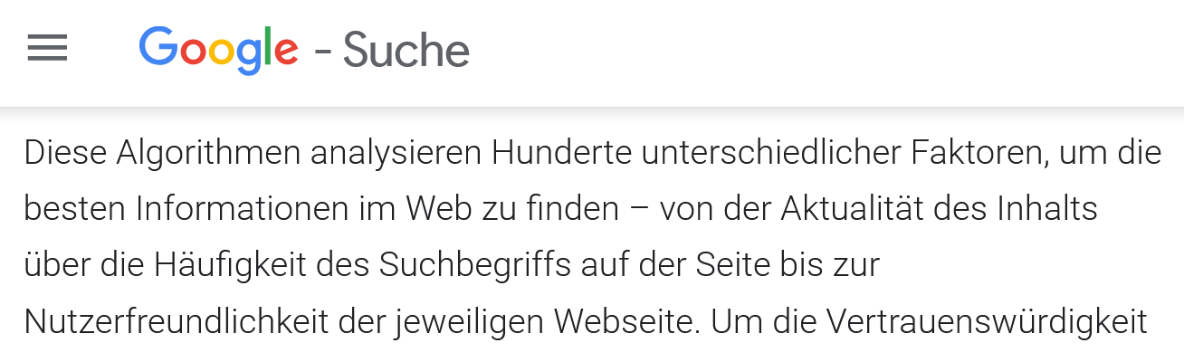 Google möchte Inhalte ranken, die eine positive User Experience bieten. Das geben sie auch auf ihrer Seite, wie die Suche funktioniert, an: