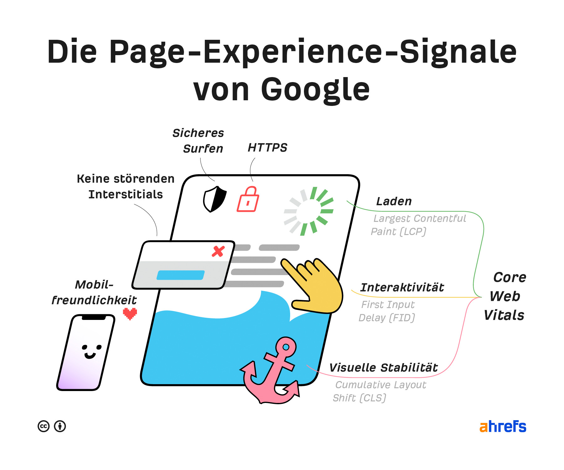 Core Web Vitals sind die Geschwindigkeits-Metriken, die Teil von Googles Page-Experience-Signalen sind und zur Messung der Nutzererfahrung verwendet werden. Die Metriken messen die visuelle Auslastung mit Largest Contentful Paint (LCP), die visuelle Stabilität mit Cumulative Layout Shift (CLS) und die Interaktivität mit First Input Delay (FID).