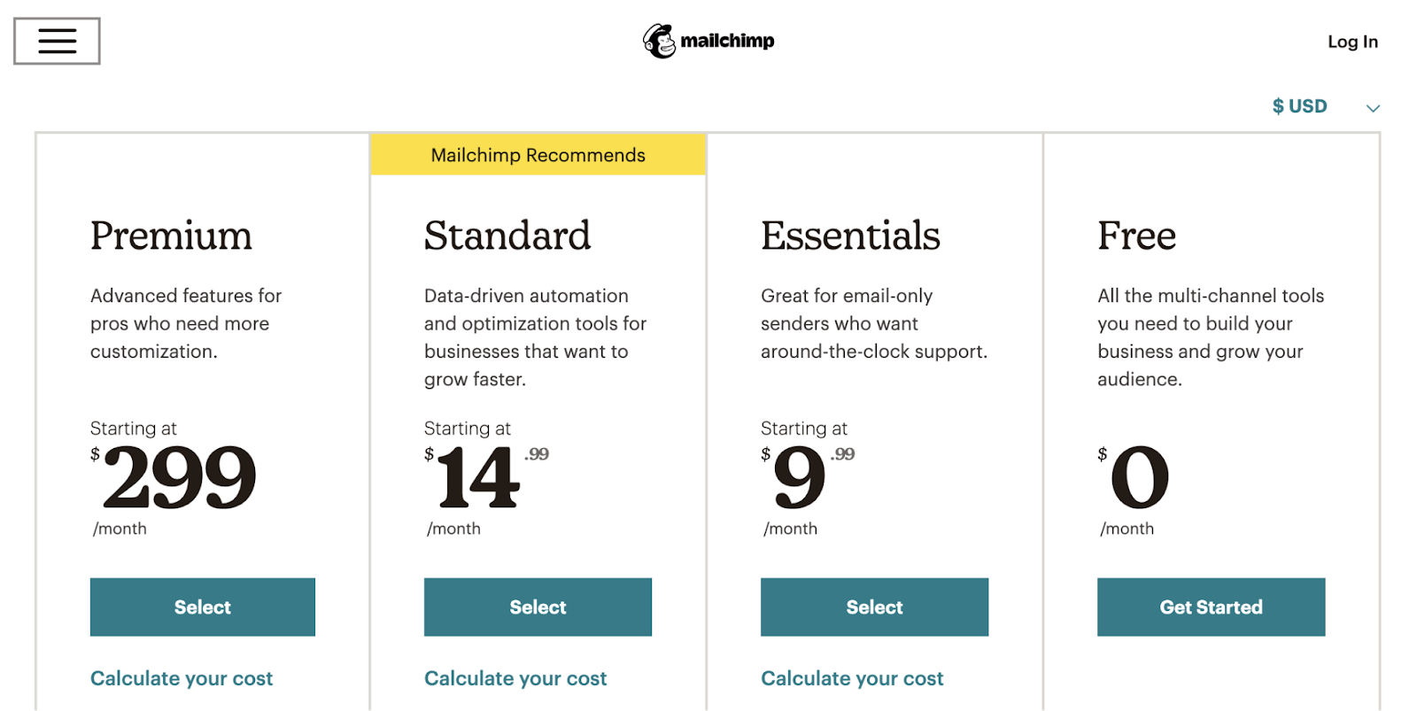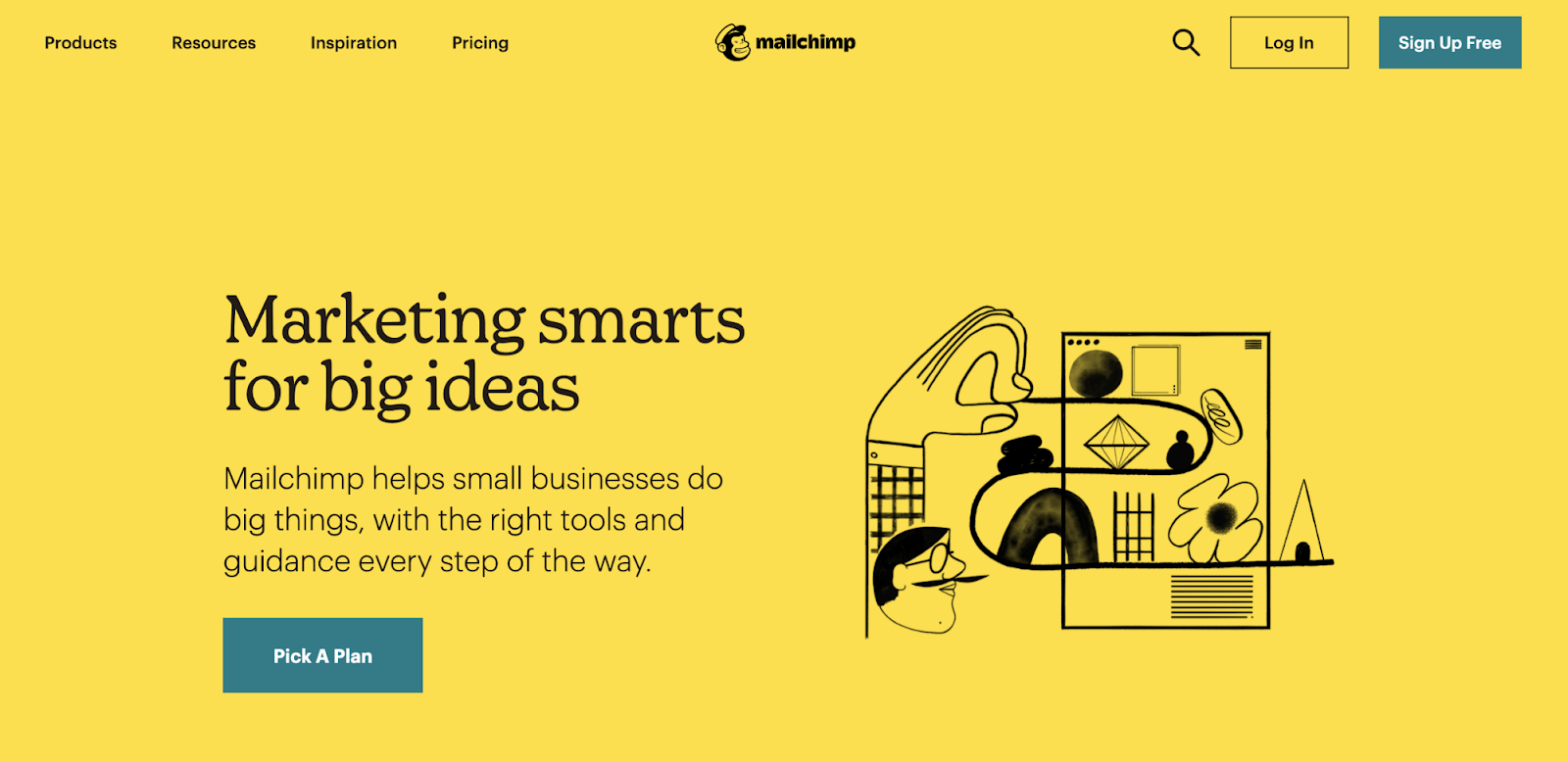 Ein Blick auf die Homepage von MailChimp genügt, um zu wissen, dass sie Marketing-Tools für KMUs anbieten. Das ist ihr Hauptsegment.