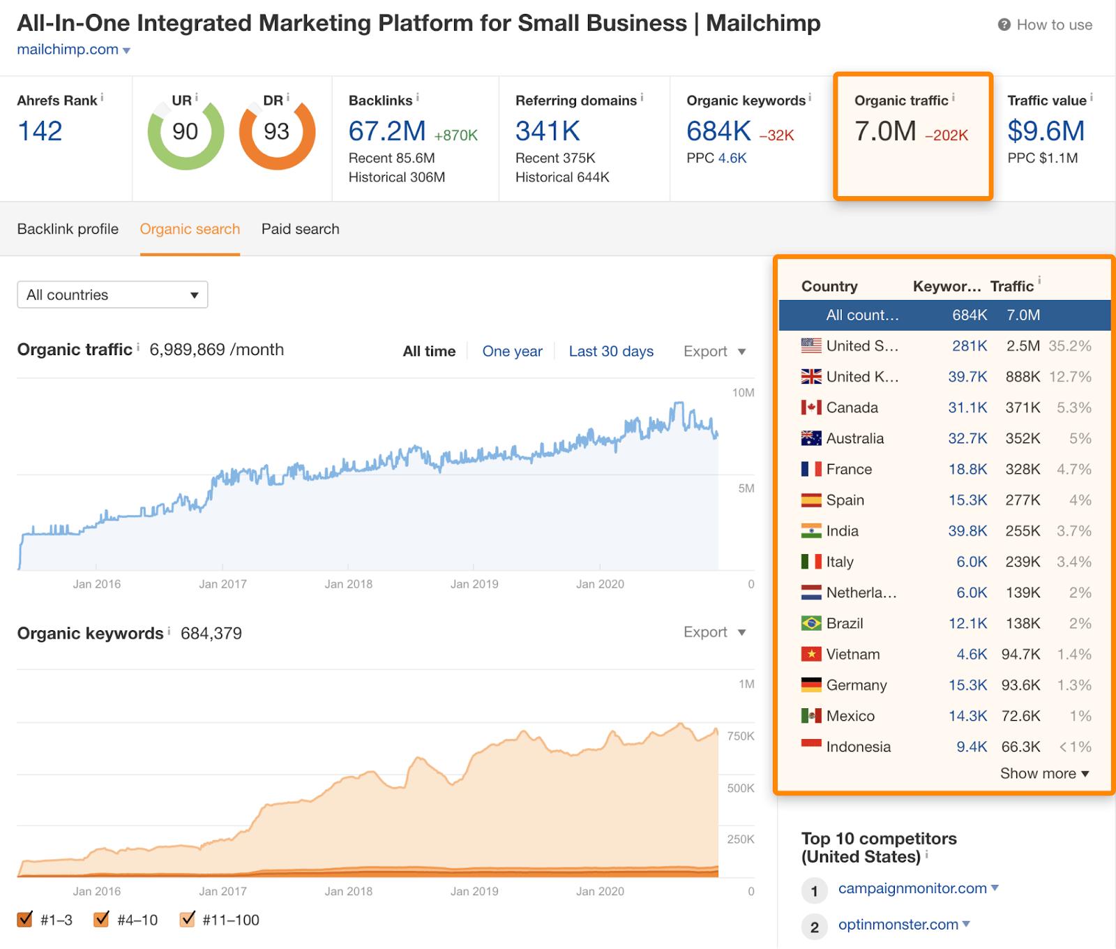 Für den Rest dieses Artikels werde ich Mailchimp als Beispiel für einen Mitbewerber verwenden, weil es wahrscheinlich eine Marke ist, die du bereits kennst.